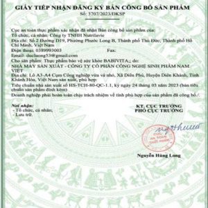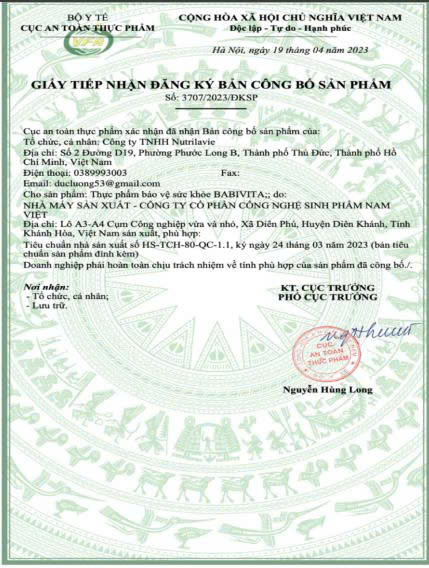 BABIVITA được sản xuất bởi Công ty TNHH Nutrilavie, một đơn vị uy tín trong lĩnh vực thực phẩm bổ sung dinh dưỡng tại Việt Nam, tuân thủ nghiêm ngặt các tiêu chuẩn an toàn vệ sinh thực phẩm.