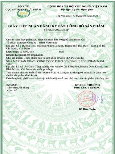 1. BABIVITA PLUS – Được Bộ Y Tế chứng nhận an toàn