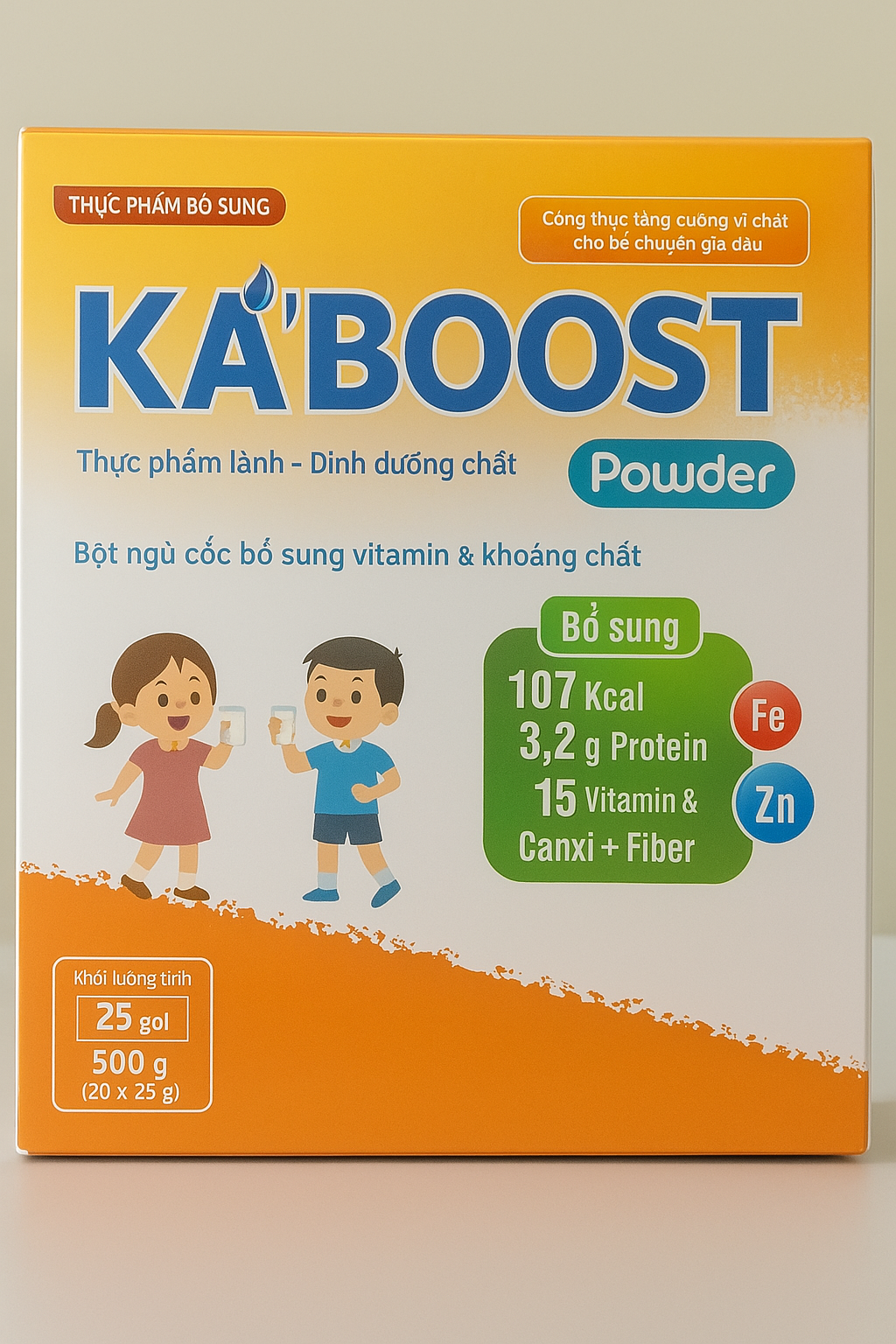 KA BOOST POWDER là lựa chọn hoàn hảo để bổ sung vi chất, phòng ngừa suy dinh dưỡng, nâng cao đề kháng và hỗ trợ phát triển toàn diện cho trẻ từ 3 tuổi trở lên. Sản phẩm phù hợp cho cả trẻ khỏe mạnh cần bữa ăn phụ, lẫn trẻ thấp còi, biếng ăn cần can thiệp dinh dưỡng bài bản.